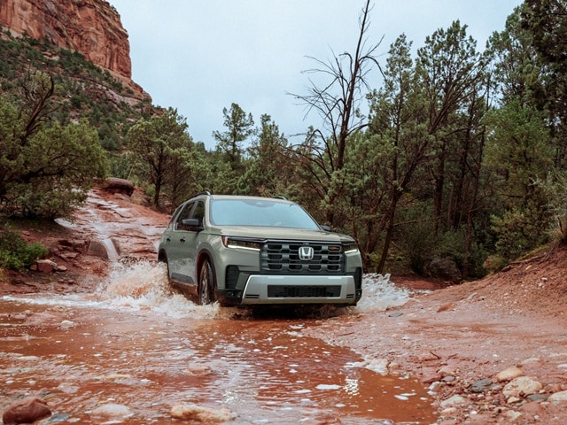 You can upgrade to a new 2026 Honda Pilot with a hands-free access power tailgate. This feature brings ease to loading your Honda SUV at the Saturday Morning Farmers Market at Old Poway Park. New 2026 Honda Pilot SUVs ride on standard 20-inch alloy wheels. TrailSport models switch to 18-inch wheels paired with all-terrain tires. Skid plates are also included for this off-road model in the 2026 Honda Pilot family. Illuminate your path through "The City in the Country" with the LED headlights and LED fog lights of the 2026 Honda Pilot.